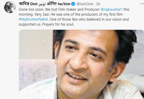फिल्म मेकर ओनिरो ने ट्विटर पर राज कौशल के लिए लिखा, ‘बहुत जल्द चले गए, हमने फिल्म निर्माता राज कौशल को आज सुबह खो दिया है। बहुत दुख की बात है। वह मेरी पहली फिल्म माई ब्रदर निखिल के निर्माताओं में से एक थे। उन कुछ लोगों में से एक जिन्होंने हमारी दृष्टि में विश्वास किया और हमारा समर्थन किया। उनकी आत्मा के लिए प्रार्थना।’